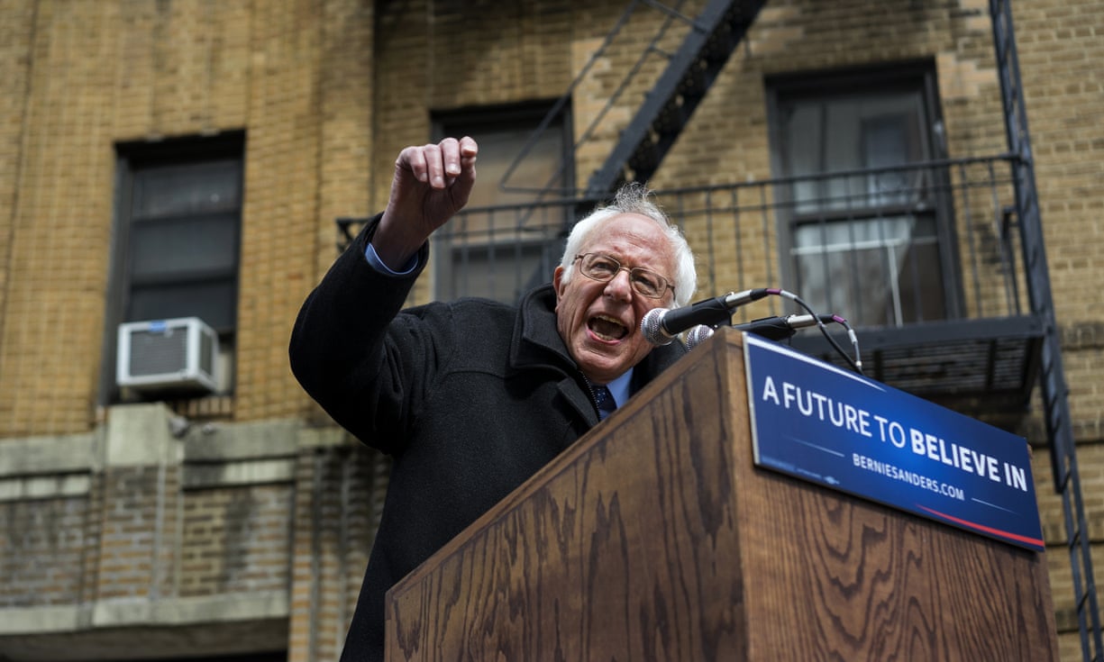 Sanders addresses rally outside his childhood home in Brooklyn, New York. April 8.
